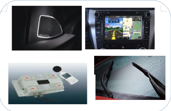 車載電視/音響,DVD/GPS,防盜器,雨刮,機動車電喇叭,洗滌器,轉(zhuǎn)向柱上組合開關(guān),翹板開關(guān),保險絲、各類電機、點火線圈,繼電器、車載充電器、車車載按摩/加熱坐墊、車載風扇、車載空調(diào)、車載電水壺、車載冰箱、車載咖啡壺、車載電動千斤頂、車載吸塵器、車載電動工具、信號閃光器、玻璃升 降器……