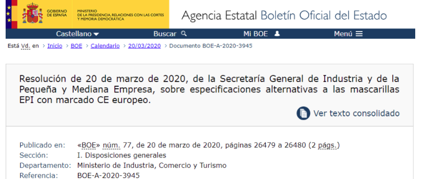 針對(duì)新冠肺炎疫情期間帶CE標(biāo)識(shí)的個(gè)人防護(hù)用品市場(chǎng)短缺的現(xiàn)狀,近日,西班牙工業(yè)和中小企業(yè)部發(fā)布決議,公布中國(guó)口罩相關(guān)標(biāo)準(zhǔn)可替代歐洲標(biāo)準(zhǔn)。