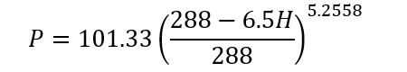氣壓隨高度的變化是比較復(fù)雜的,對于不同的地理區(qū)域,在同一高度上氣壓隨緯度的變化而變化;對于同一個地理區(qū)域,在同一高度上氣壓隨季節(jié)的變化而變化。目前常用兩種常用方法獲得規(guī)定高度下的氣壓值:一是參考標(biāo)準(zhǔn)ISO 2533;二是可參考GJB150.24A,按照相應(yīng)的公式進行計算,即當(dāng)高度H≤20km時,壓力P的計算公式為
