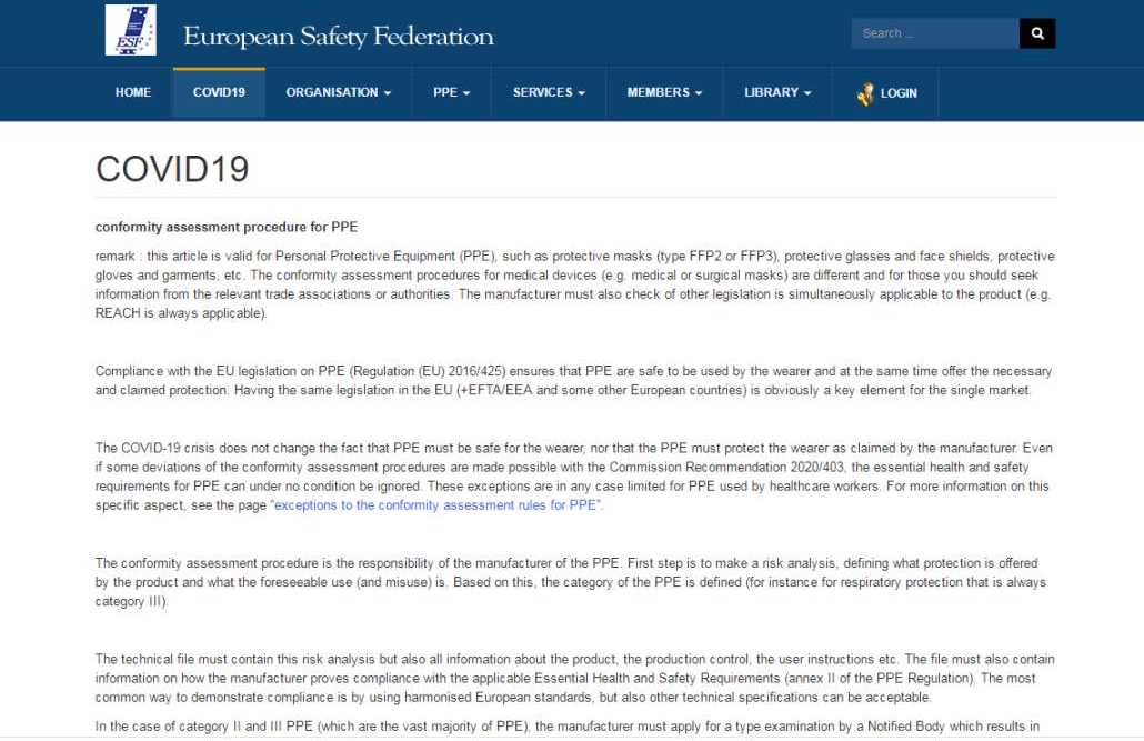 歐洲安全聯(lián)盟在其官方網(wǎng)站上發(fā)文明確:防護(hù)口罩等個(gè)人防護(hù)用品(PPE)需滿足REACH法規(guī)等要求。