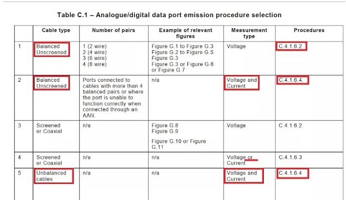 傳導(dǎo)騷擾的實(shí)質(zhì)是電磁波在低頻時(shí)由于波長原因需要依附導(dǎo)體進(jìn)行傳播,根據(jù)導(dǎo)體的性質(zhì),我們通常將傳導(dǎo)騷擾分為:電源端傳導(dǎo)騷擾、信號(hào)端傳導(dǎo)騷擾、負(fù)載端傳導(dǎo)騷擾。其中信號(hào)端控制線485和232的傳導(dǎo)騷擾測(cè)試較少,下面就以CISRP 32中對(duì)這兩種線纜的測(cè)試要求進(jìn)行解析。