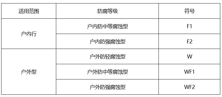 如,燈具的防腐等級(jí)WF1表示,該燈具適用于戶外中等腐蝕環(huán)境條件。