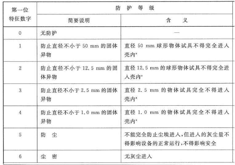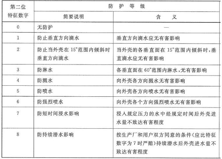 2、防護(hù)等級(jí)IP的組成及其含義