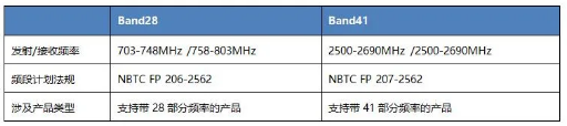 2020年10月26日,NBTC決定駁回僅支持Band 28和Band 41部分頻段的WWAN用戶設(shè)備申請(qǐng)。