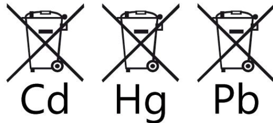 電池標(biāo)簽代表一個(gè)打叉的帶輪垃圾箱,適用于所有電池、蓄電池和電池組含有超過0,0005%汞、超過0,004%鉛或超過0,002%鎘的產(chǎn)品標(biāo)簽必須標(biāo)明相關(guān)金屬的化學(xué)符號(hào):Hg、Cd或Pb,此類產(chǎn)品的制造商必須在電池標(biāo)簽下方打印化學(xué)符號(hào)。
