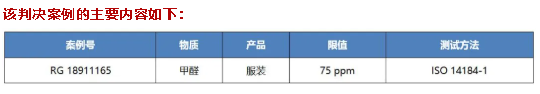 從1988年1月起,甲醛就被歸類為已知的可致癌化學(xué)物質(zhì)列入加州65提案物質(zhì)清單。近期,加州產(chǎn)生了一例企業(yè)因銷售含甲醛的服裝違反了加州65提案而被訴訟的判決案例(案例號:RG18911165)。涉事企業(yè)被禁止提供或銷售甲醛含量超過75 ppm的服裝產(chǎn)品,此外還被要求支付217,000美金。
