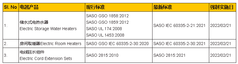 儲水式電熱水器,房間取暖器,電線延長組件三類產(chǎn)品均屬于海灣地區(qū)GSO低電壓產(chǎn)品技術(shù)法規(guī)管控清單內(nèi)。故建議廣大廠商在申請G mark證書時,若沙特為起出口目的國之一的話,亦應(yīng)注意確保產(chǎn)品及時符合SASO最新標(biāo)準(zhǔn),以免影響后續(xù)沙特Saleem CoC證書的申請造成不必要的出貨延誤。